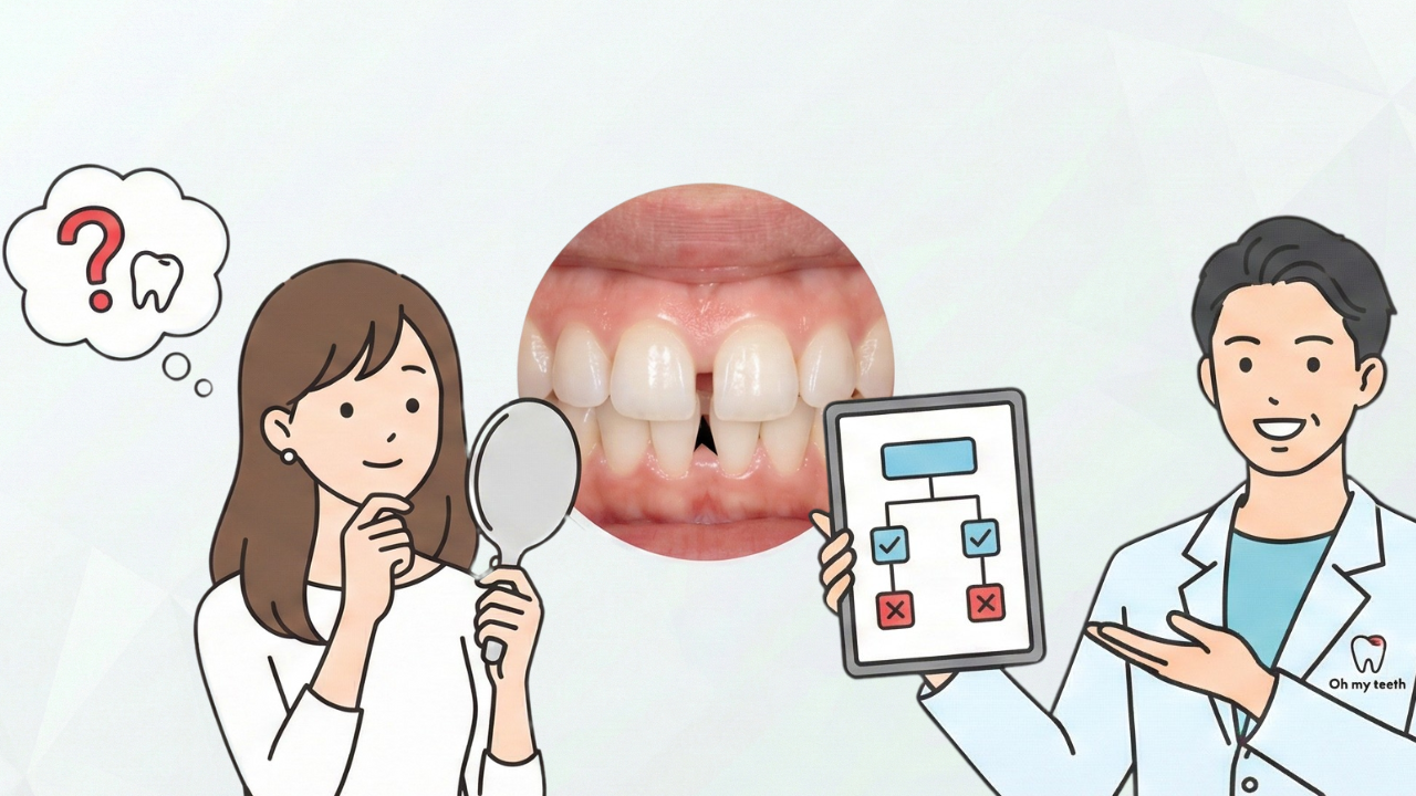 Oh my teethでは、治療計画の段階でこうしたリスクを評価し、必要に応じてIPR(歯の形態修正)や歯の位置コントロールを行い、ブラックトライアングルを最小限に抑えるよう努めています。