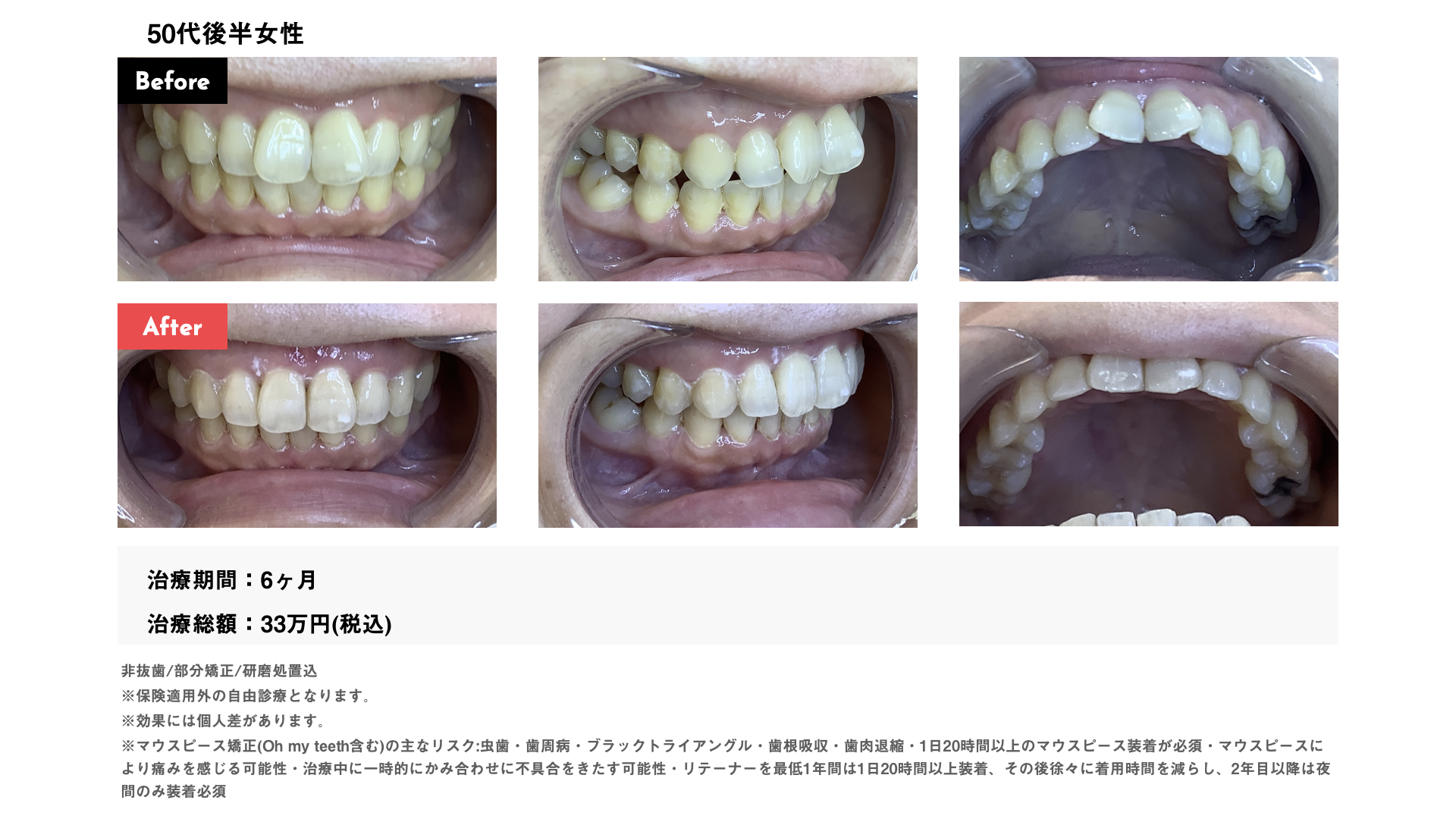 ここでは、Oh my teethの症例をもとに、50代で矯正した方のリアルな変化をご紹介します。