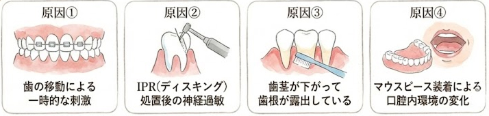 - 原因①:歯の移動による一時的な刺激