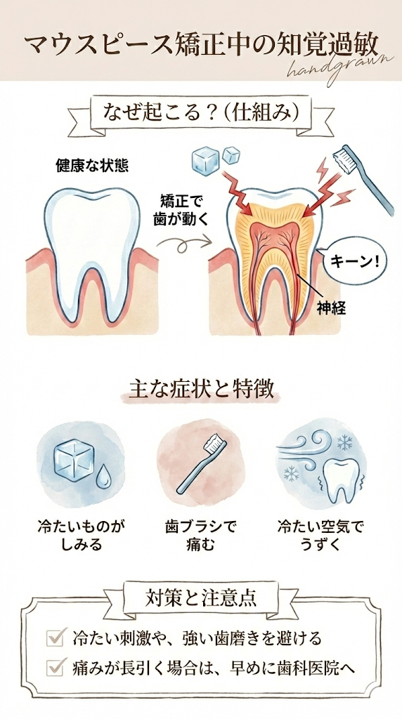 「マウスピース矯正を始めてから、冷たい水がしみるようになった」