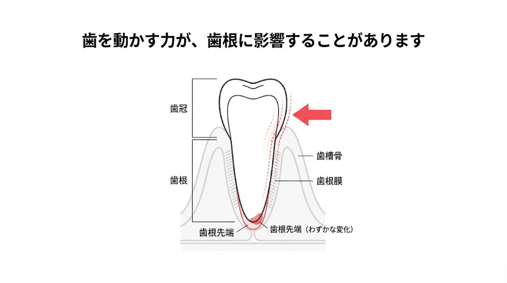 ①歯の根が短くなる「歯根吸収」のリスクがあるから