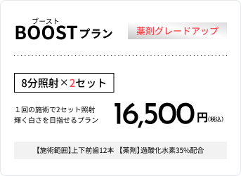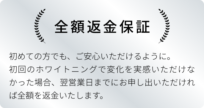 目標の白さに合わせて薬剤・照射回数の調整ができるため、ご安心ください。