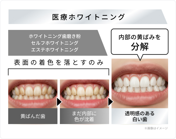 歯の内部の黄ばみを分解して歯を白くできるのが